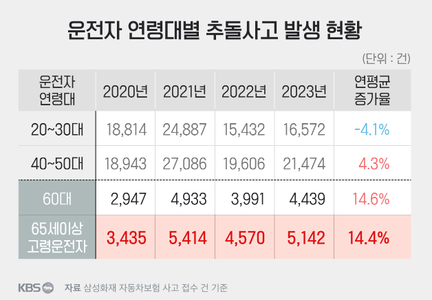고령운전자들의 사고 증가율이 급격하게 늘어났다는 것도 증명하였고요.(KBS 기사 본문)