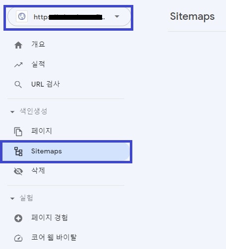 4. 3번에서 속성 추가 했던 탭에 나의 하위도메인 주소를 클릭하고 sitemap 탭을 클릭합니다. 여기에서 우리가 rss와 sitemap을 등록할 겁니다.