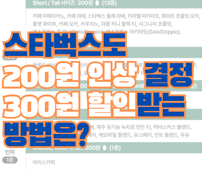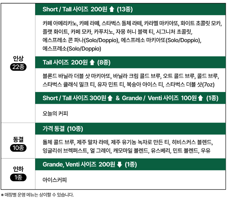 이전에는 커피값은 동결하고 사이즈 업을 하게 될 때에만 가격인상을 시켰는데요. 그란데 +800원, 벤티 +1,600원 인상이었습니다.