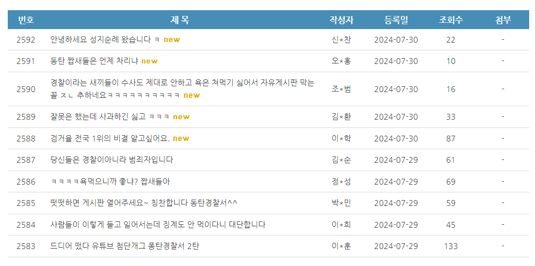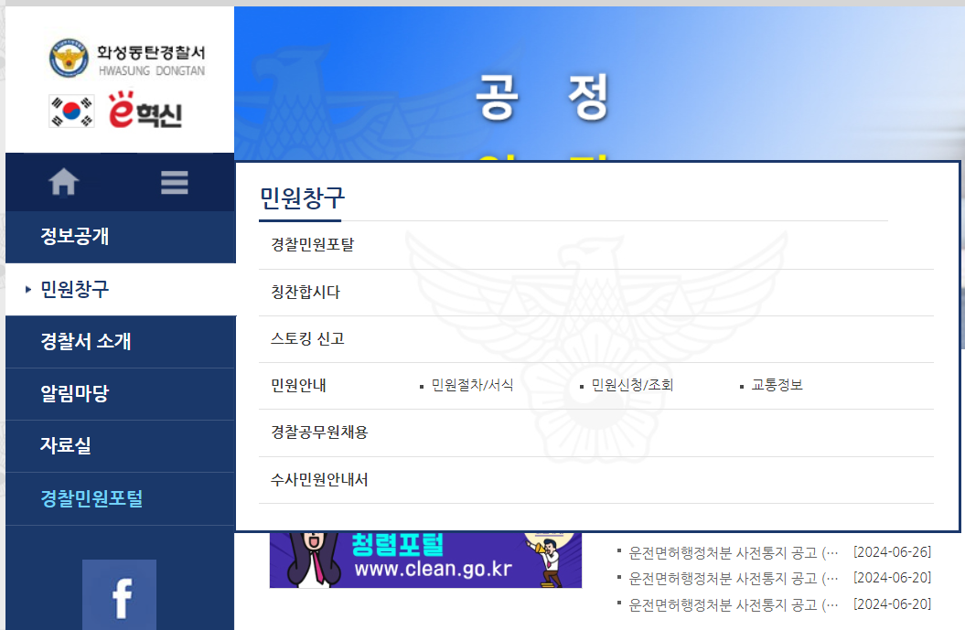 화성 동탄 경찰서는 자유게시판을 "행정기관 민원서비스 통합 방침에 따라 민원은 '경찰민원포털'로 통합 운영된다"는 안내가 있었습니다.