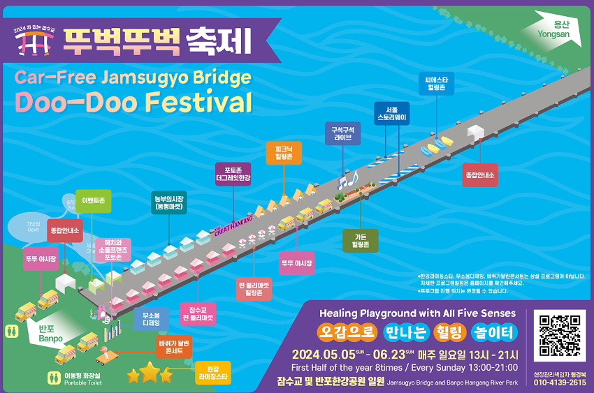 서울 반포공원과 잠수교에서 뚜벅뚜벅 축제를 하고 있습니다. 매주 일요일마다 13:00-21:00까지 진행되고 있고요. 기간은 6월 23일(일)까지 입니다.